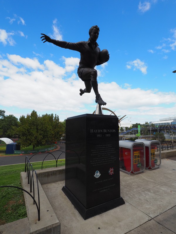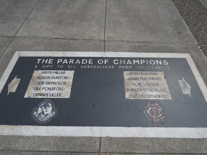 The first place we went to was the MCG. We have a game there on Easter Monday (Geelong V Hawthorn). So, 700mtrs later, we found ourselves at the MCG Precinct. Around the precinct, we discovered 10 statues (Parade of Champions) erected to the greatness of Australian sports people.