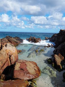 Just a few minutes drive from the bustling little town of Yallingup, towards Margaret River along Caves Road, you’ll find a road heading west (Wyadup Road). Following it right to the end there’s a carpark with amazing views of the Indian Ocean. You’ll probably bump into a few surfers trying to catch the waves down at the beach, but a little hike from the carpark to the right you’ll find a large rock pool, but it’s no ordinary rockpool. It’s almost like a natural spa where the surrounding rocks shelter this little inlet from the crazy waves.