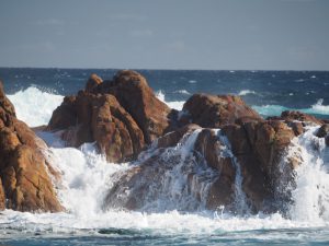Sugarloaf Rock and the sometimes treacherous seas that pound it are best viewed from the platform. With its ever-changing colour, it is difficult to decide when it’s best to see it.